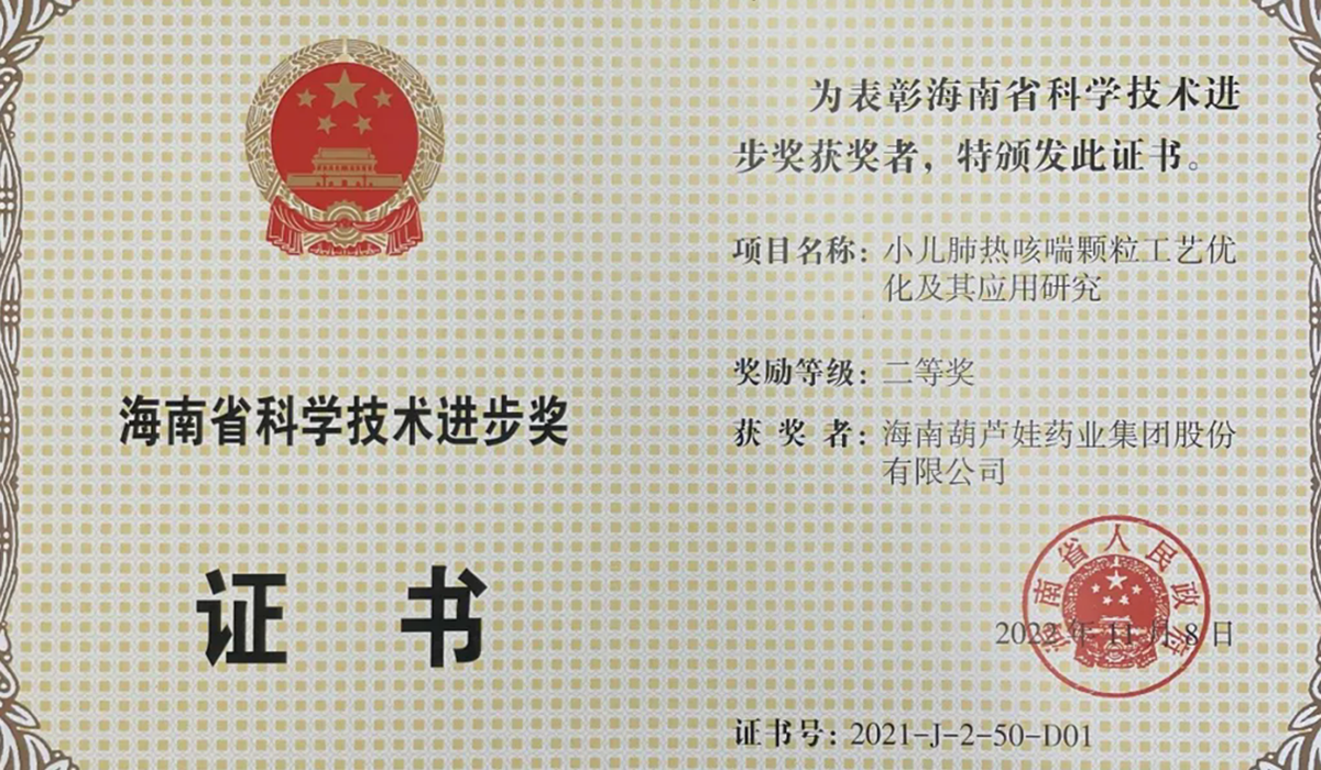 BG视讯药业集团申报的专利“克咳片及其制备方法”荣获 第四届海南省专利奖金奖