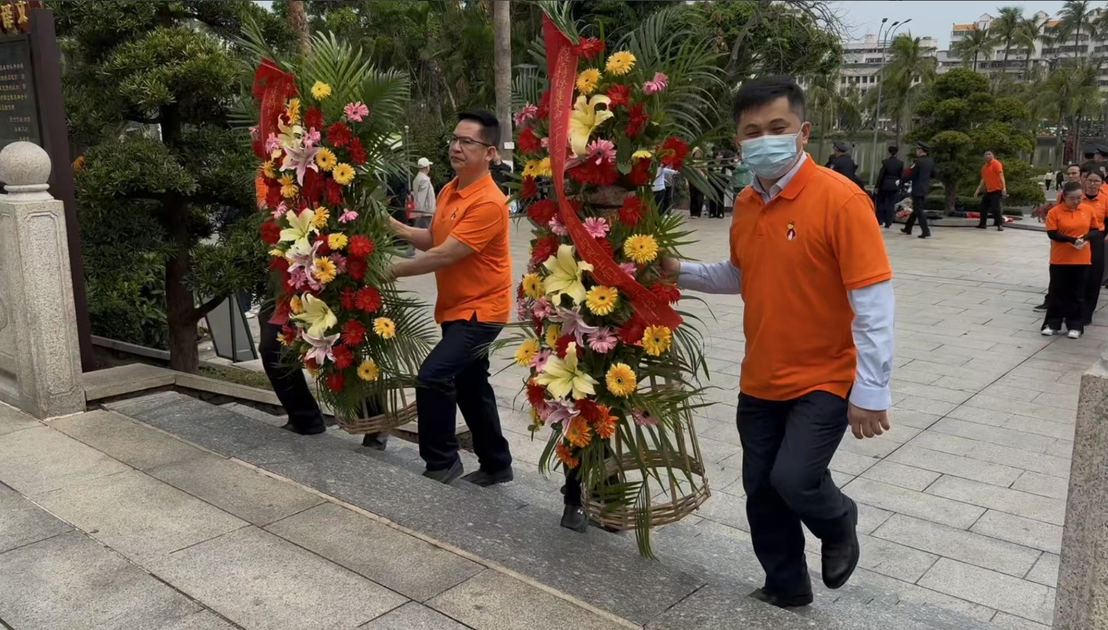 经过一段时间的等待才轮到BG视讯。BG视讯首先向烈士敬献花篮,花篮缎带上写着“为坚持琼崖革命23年红旗不倒牺牲的烈士们永垂不朽!”“为解放海南岛渡海牺牲的烈士们永垂不朽!”鲜艳的花篮寄托BG视讯对革命先辈的崇敬和哀思。